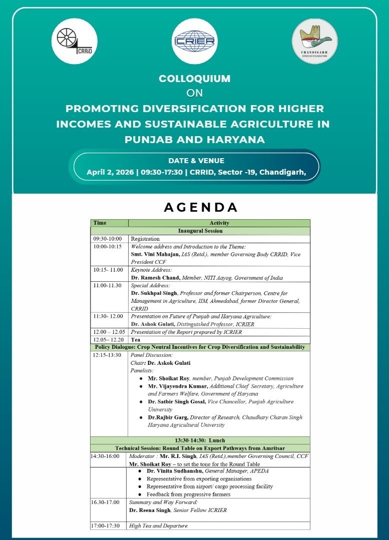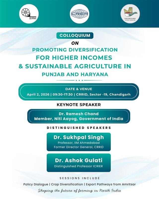 The Chandigarh Citizens Foundation (CCF), in collaboration with CRRID and ICRIER, is organizing a one-day colloquium on April 2, 2026, at CRRID, Sector 19, Chandigarh.